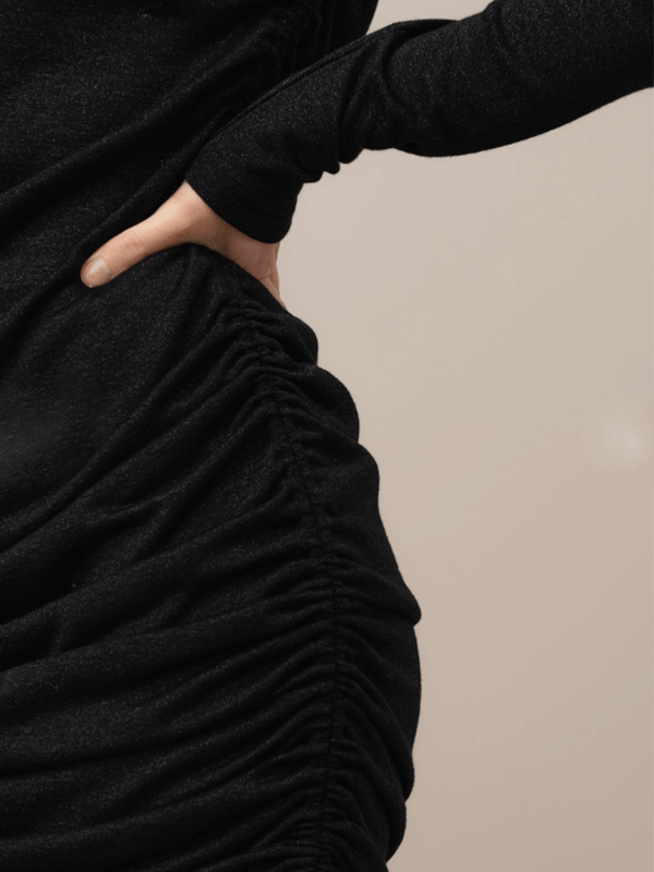 Den svarta glitterlurexen ger den en behaglig känsla och samtidigt en festlig look. Det blir festklänningen säkra kort du behöver i din höstgarderob.