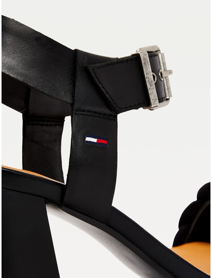 The braided strap lägger till en lyxig textur till dessa högklackade lädersandaler, kompletta med ett tjockt silverspänne för en edgy vibe. Höjdpunkter Ovandel i Läder- och polyuretanfoder Läderinlägg Naturgummi i och polyuretan Yttersula Komfortstoppning Spännestängning Tommy Jeans-märke.
