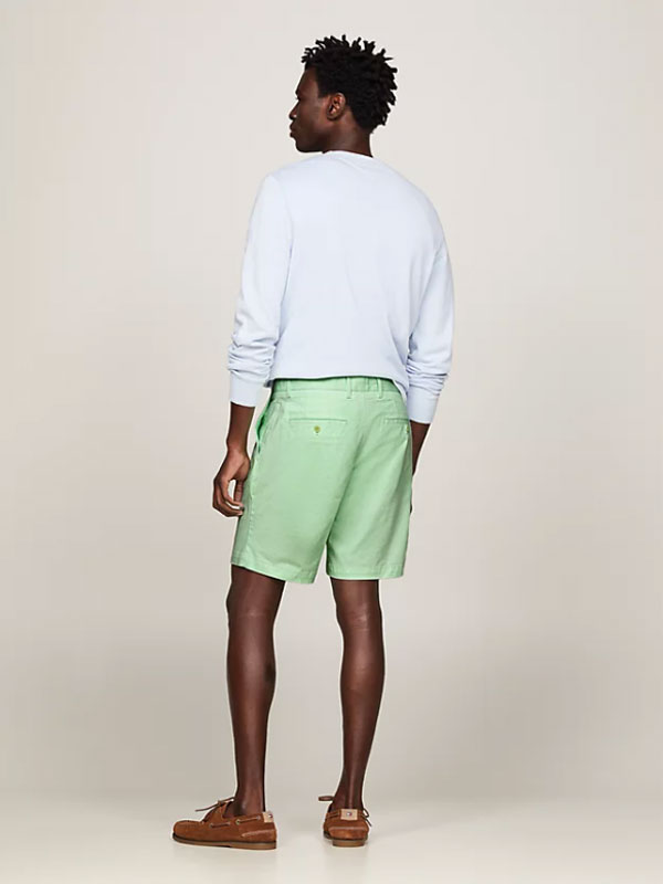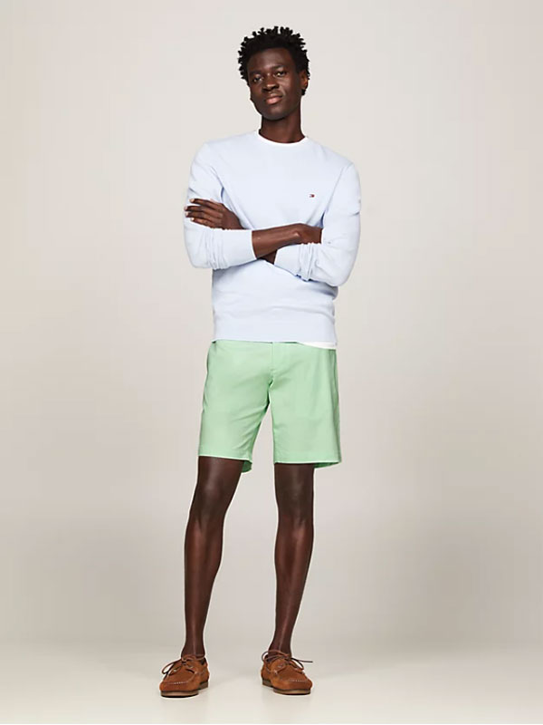 Inspirerad av året då Tommy Hilfiger först designade sin etikett med samma namn, återskapar vår kollektion från 1985 arkivikoner med mer hållbara material. Tillför en touch av dapper stil till dina varma väderlooks i dessa chinoshorts, gjorda av stretchbomull för enkel användning.