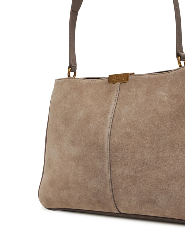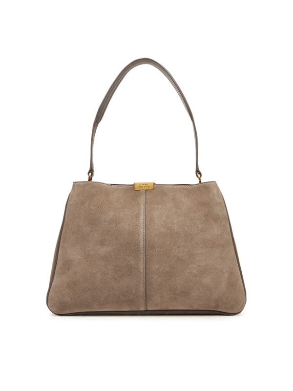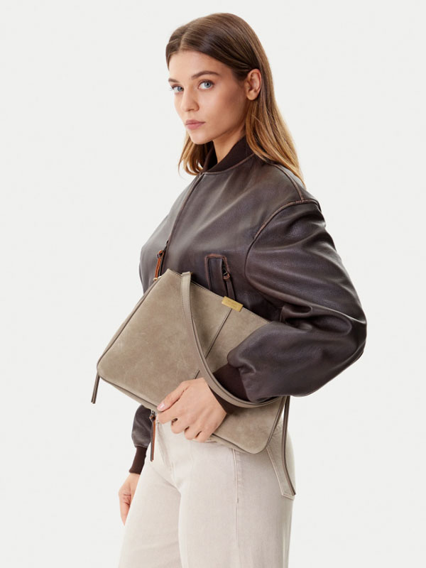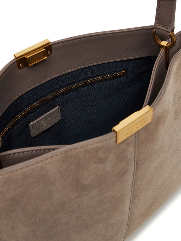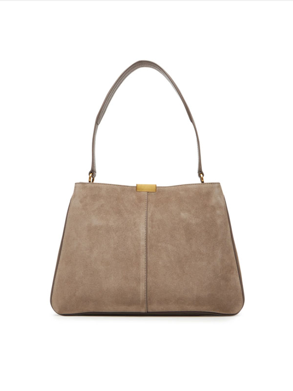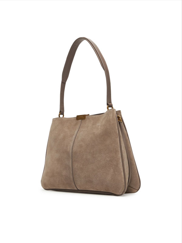 Denna bruna axelväska i mocka har en robust rem och ett elegant signaturspänne, vilket ger gott om plats för alla dina vardagssaker. Den är tillverkad av äkta mockaläder, har D-ringsdetaljer på sidorna, en praktisk magnetisk stängning och eleganta guldfärgade metalldetaljer.