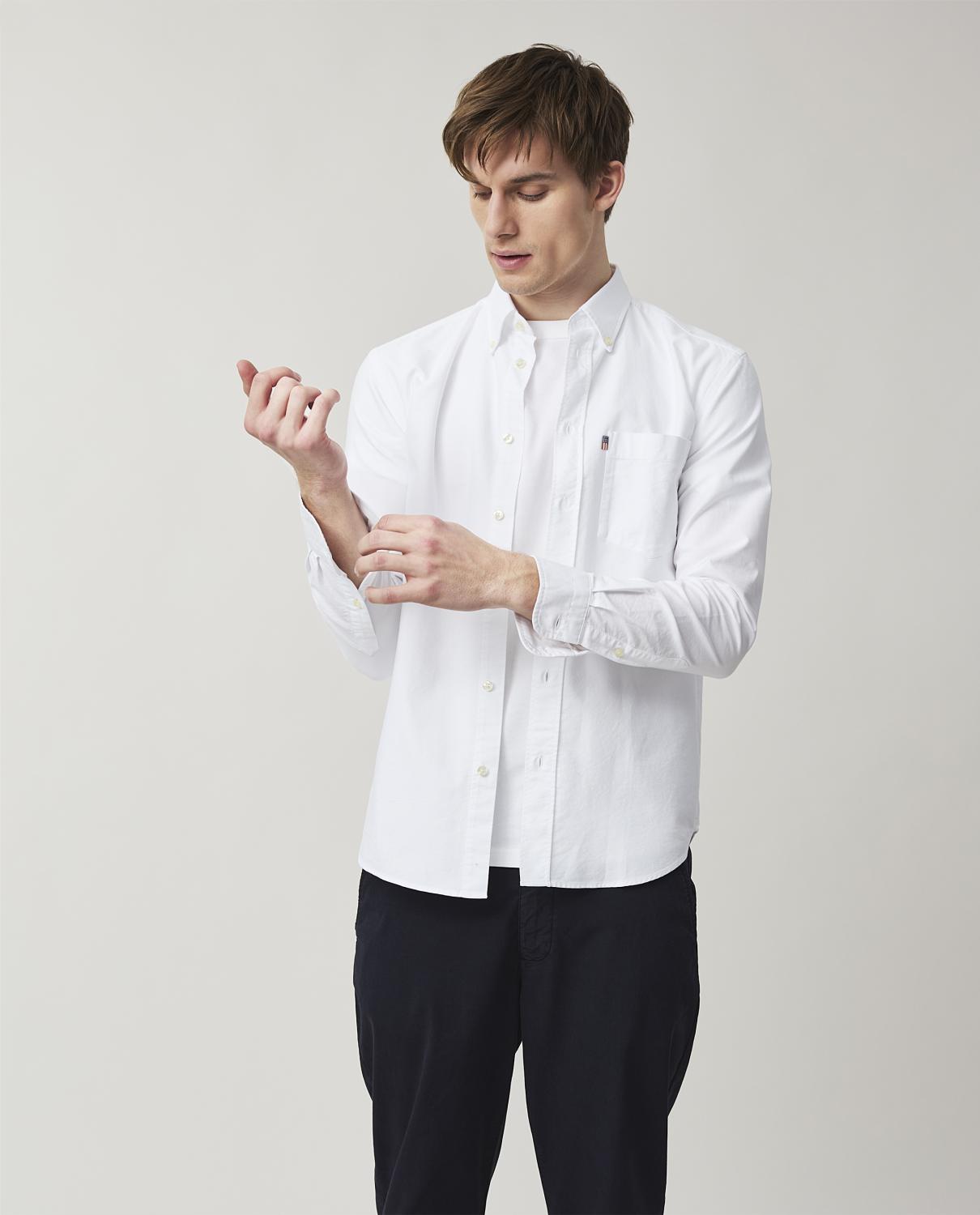Den klassiska button down-kragen kommer från 1800-talets England, där polospelare började använda knappar i hörnen av sina kragar för att hålla ned dem i blåsten under spelet. Sedan dess är denna typ av skjorta en klassiker i vars mans garderob och vår avslappnade oxford-skjorta är ett bra exempel på varför. Det slitstarka oxfordtyget andas för att hålla dig torr och bekväm utan att tumma på stilen.