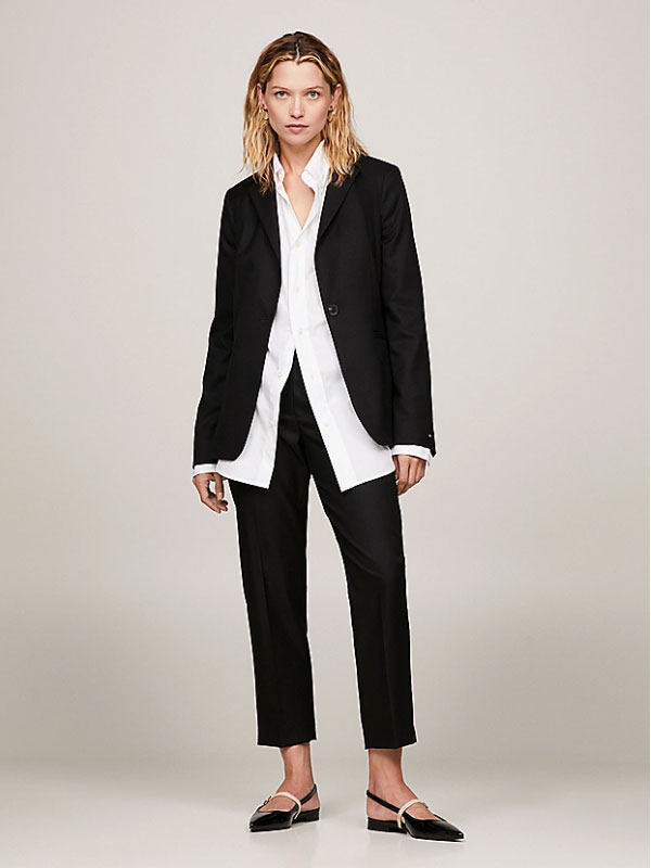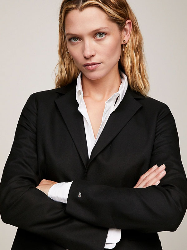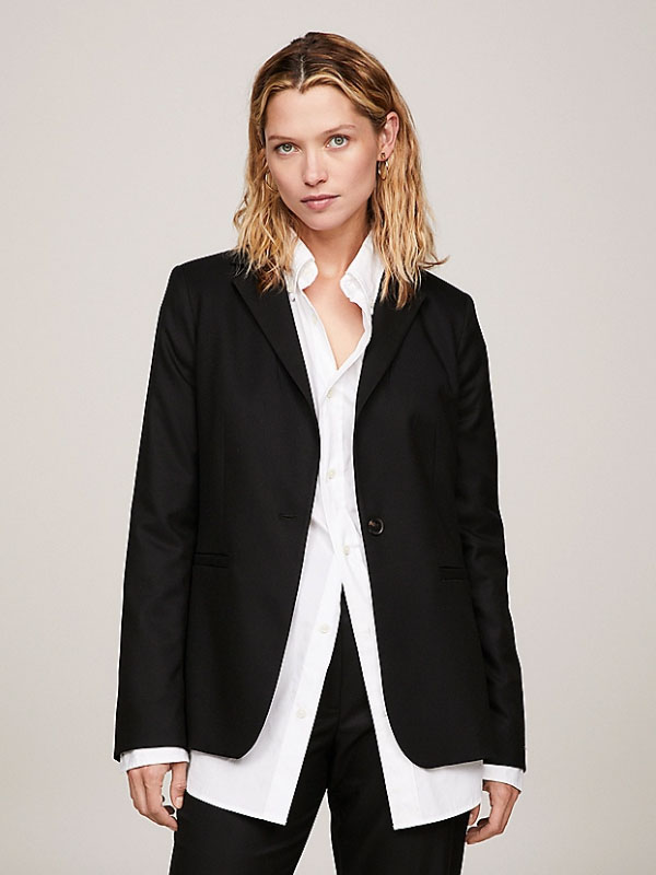En vävd textur ger en taktil känsla till den här kavajen, som är helfodrad för ett elegant fall.