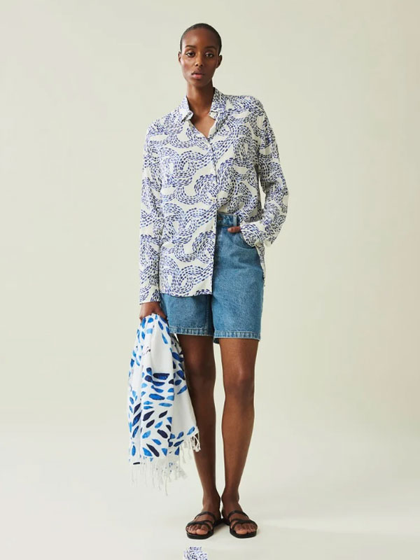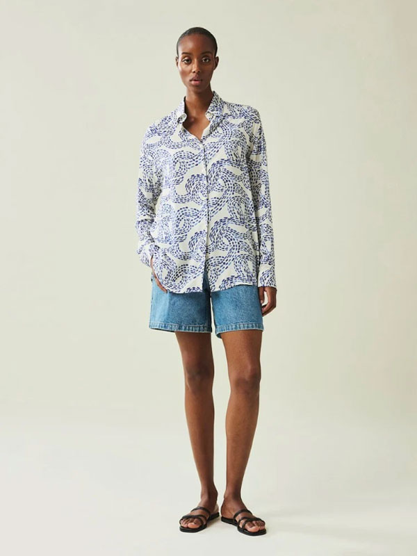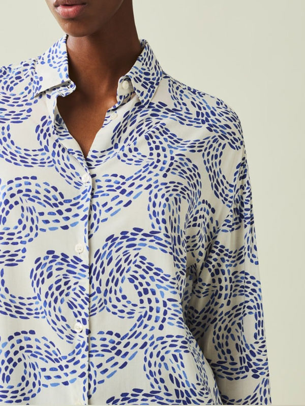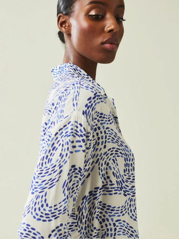 Vår Edith viskosskjorta med prickigt tryck är det perfekta tillskottet för att muntra upp din vår- och sommargarderob. Den är tillverkad av 100 % viskos för en lyxig silkeslen känsla med en elegant och smickrande drapering och har en ledig passform och ett exklusivt säsongsbetonat tryck och är enkel att piffa upp eller tona ned. Kombinera den med jeans för vardaglig elegans eller lyft din look med dina favoritkostymbyxor.