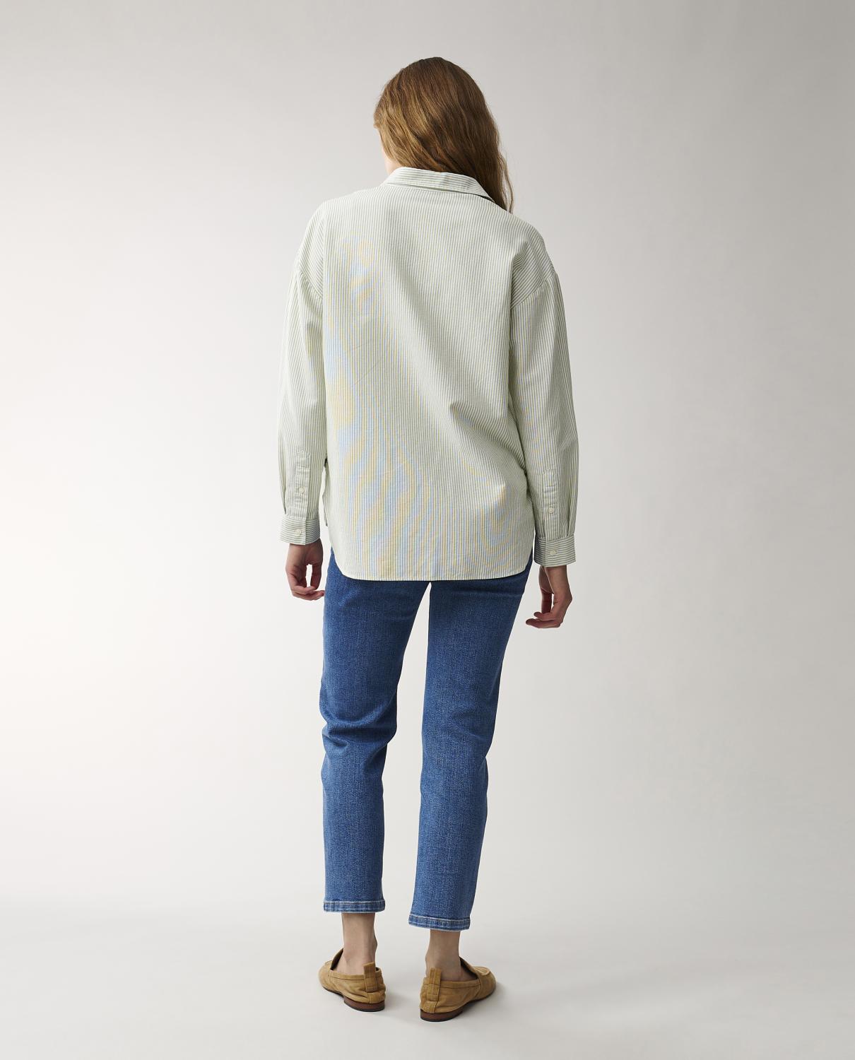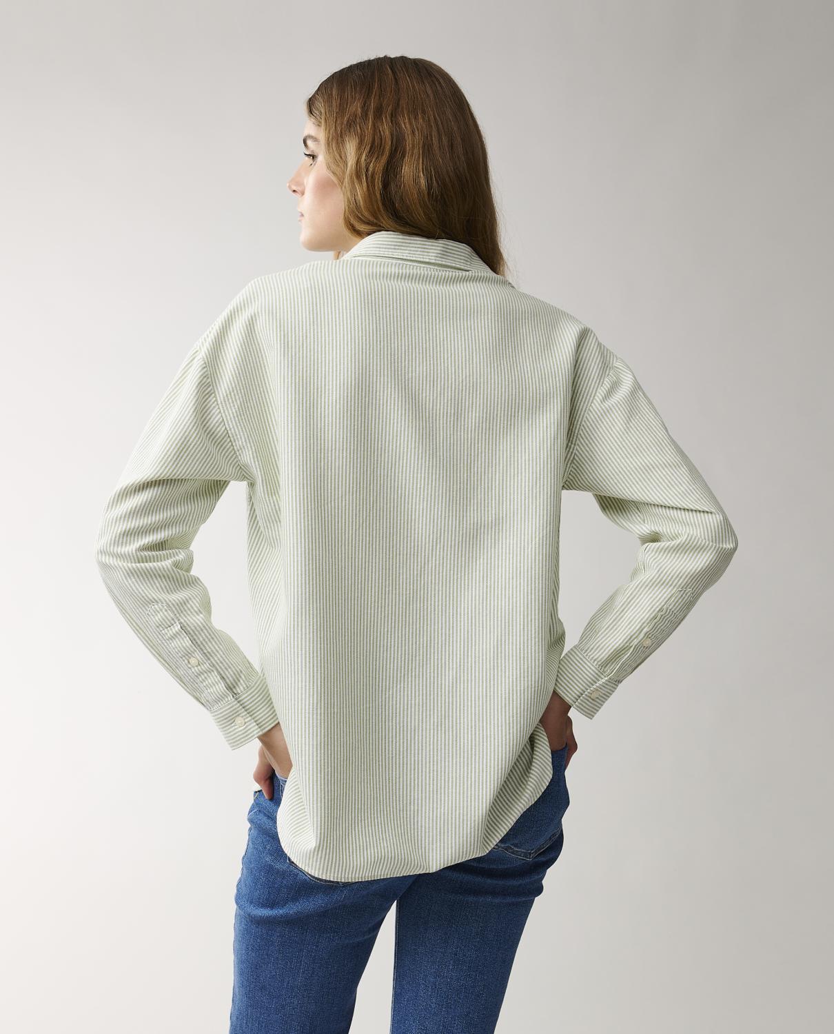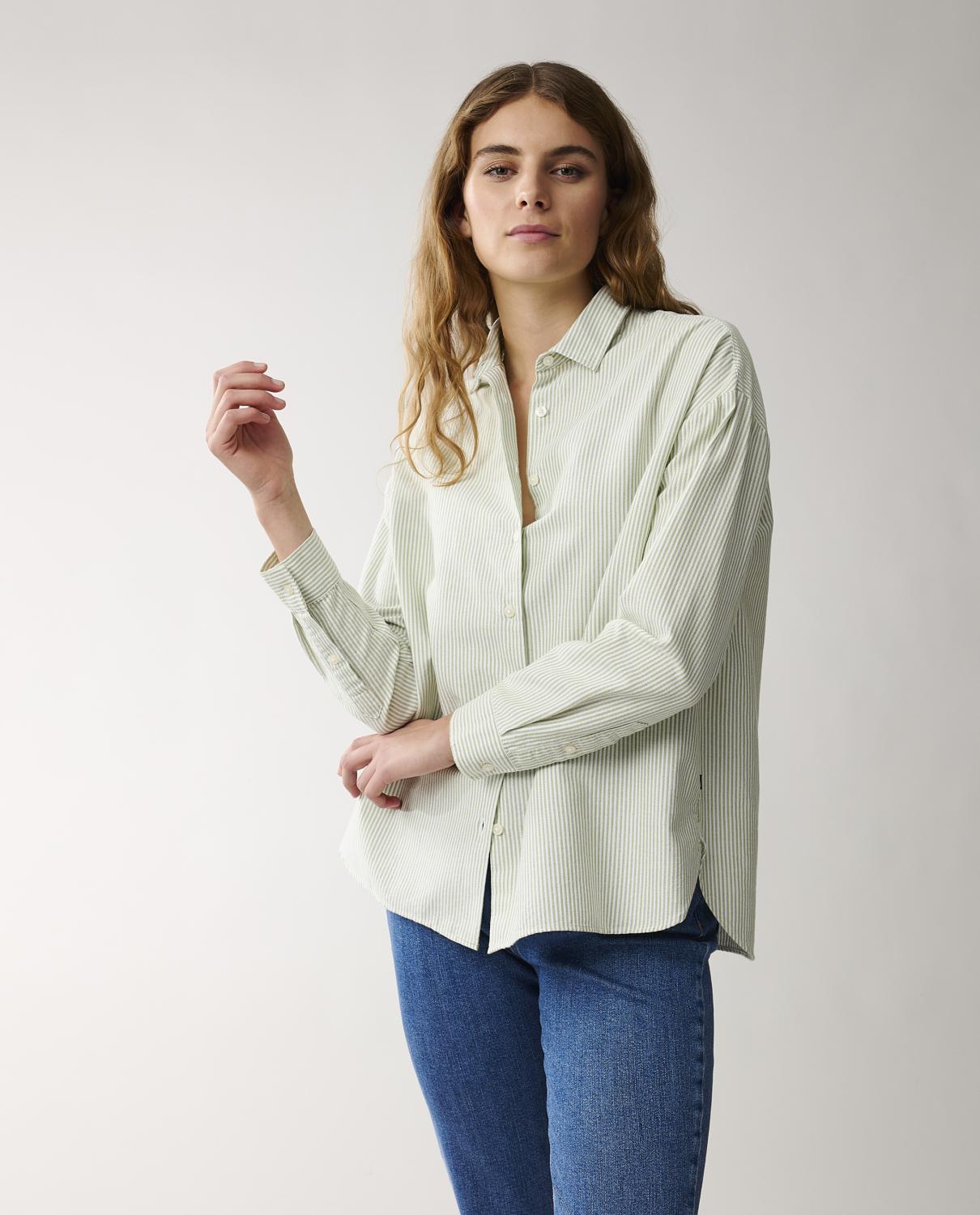 Vår ekologiska Oxfordskjorta har en tidlös design och oändliga stylingalternativ. Oavsett om du bär den öppen över en t-shirt för en ledig look eller under en kavaj för en stramare stil, blir den snabbt en storfavorit i garderoben. Den har fått alla klassiska stildetaljer som långa ärmar, buttondown fram, gröna och vita yarn-dyed ränder. Dessutom är den tillverkad av 100 % ekologisk bomull vilket gör den till ett miljövänligt val.