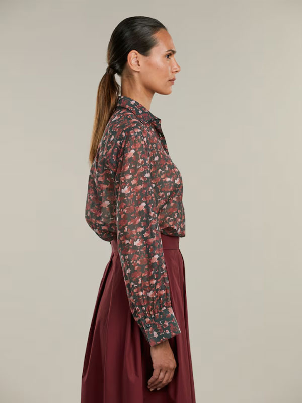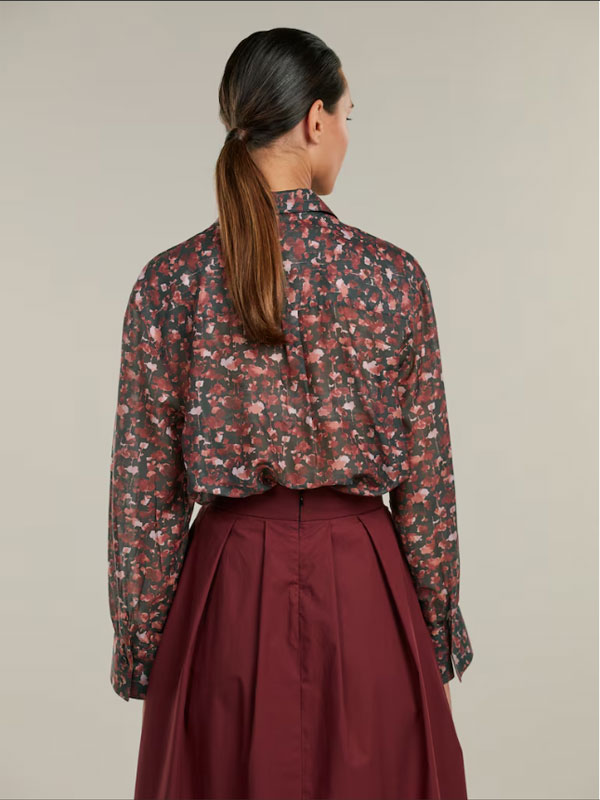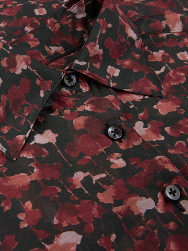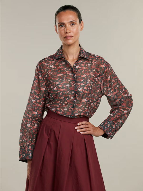Denna blommiga skjorta är tillverkad av bomull och siden och har en oversized passform. Skjortan har vida manschetter och en klassisk krage.