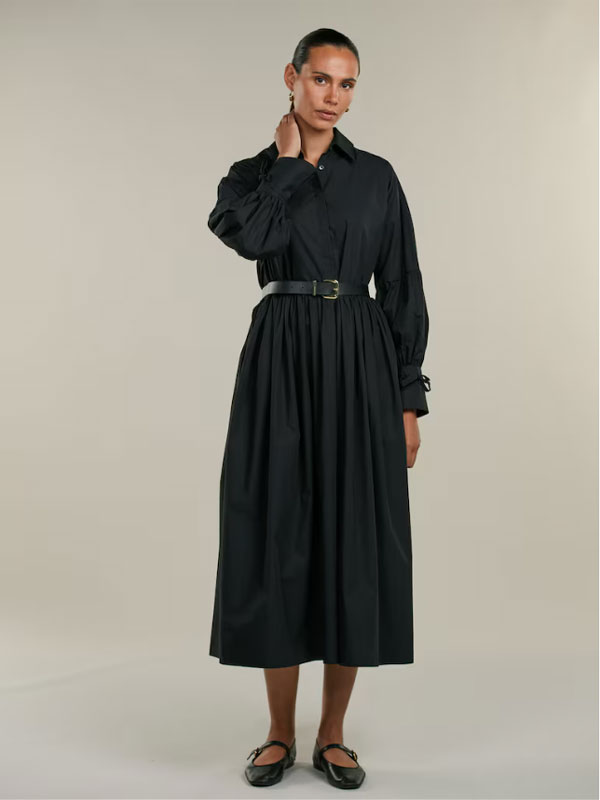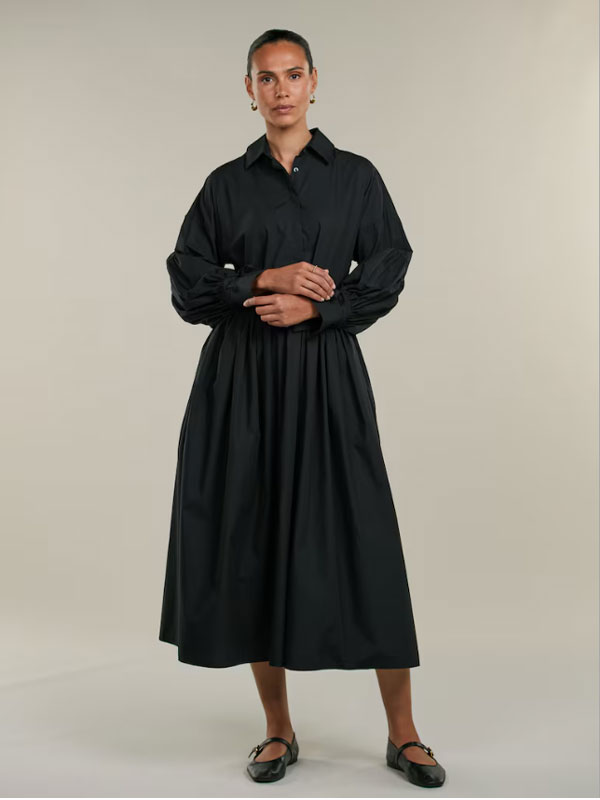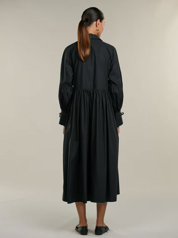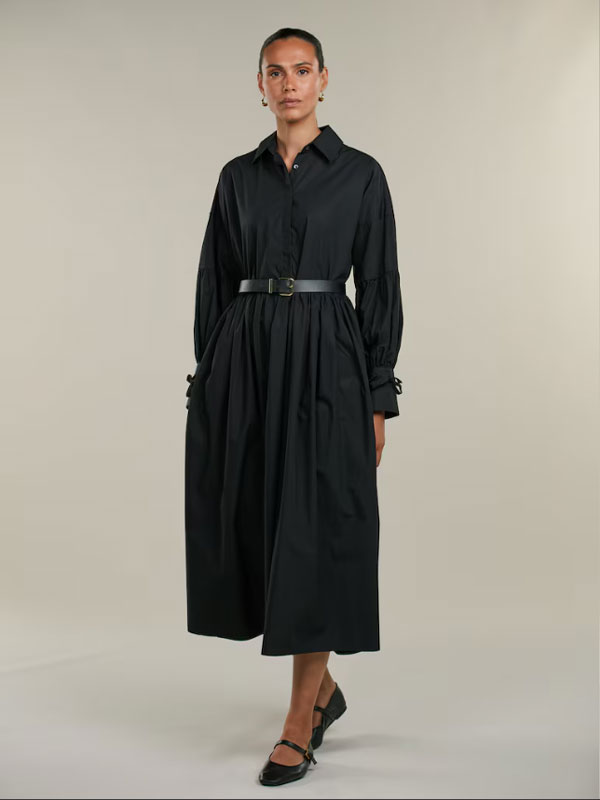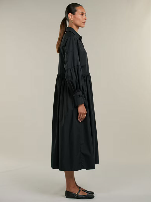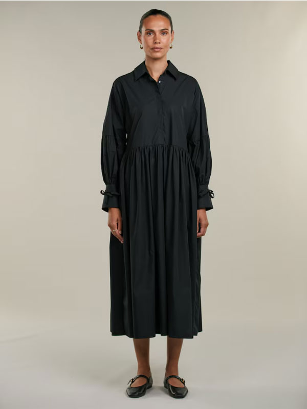 Denna klänning är tillverkad av bomull och har en oversized passform. Klänningen har voluminösa ärmar samt knytning vid manschetterna.