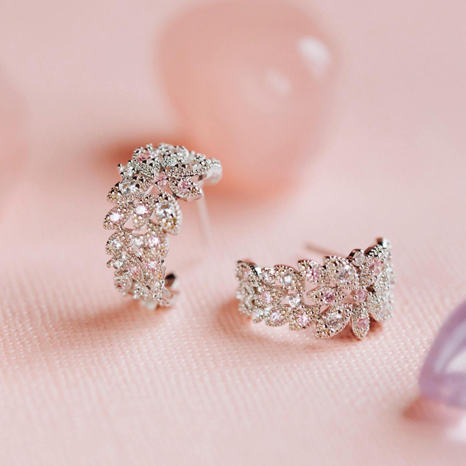 Våra Laurel hoopörhängen kombinerar på ett vackert sätt elegans och feminina drag. Fina klara och rosa stenar pryder den silverpläterade ringen och skapar en subtil men fängslande glans. Denna tidlösa accessoar är perfekt för en vardaglig grace eller för att ge en touch av glamour till speciella tillfällen. Omfamna den diskreta skönheten och den förtrollande dragningskraften hos Laurel hoopörhängen.