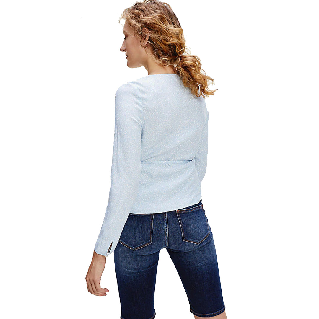 En wrap-blus från Tommy Hilfiger i 100% viskos, gjord för att smickra figuren och känns ännu mer feminin tack vare sitt vackra tryck. Självbindande bälte i midjan.