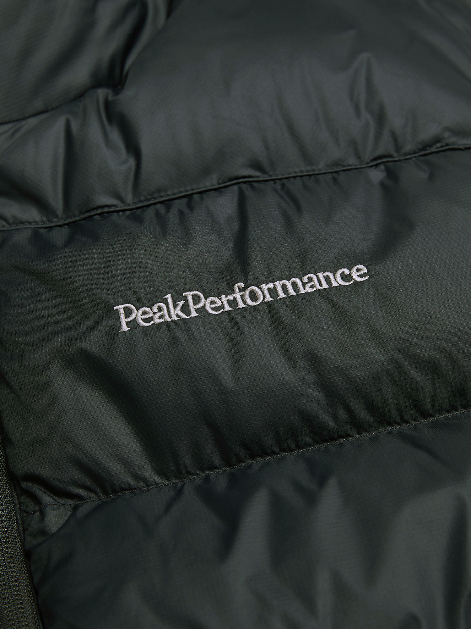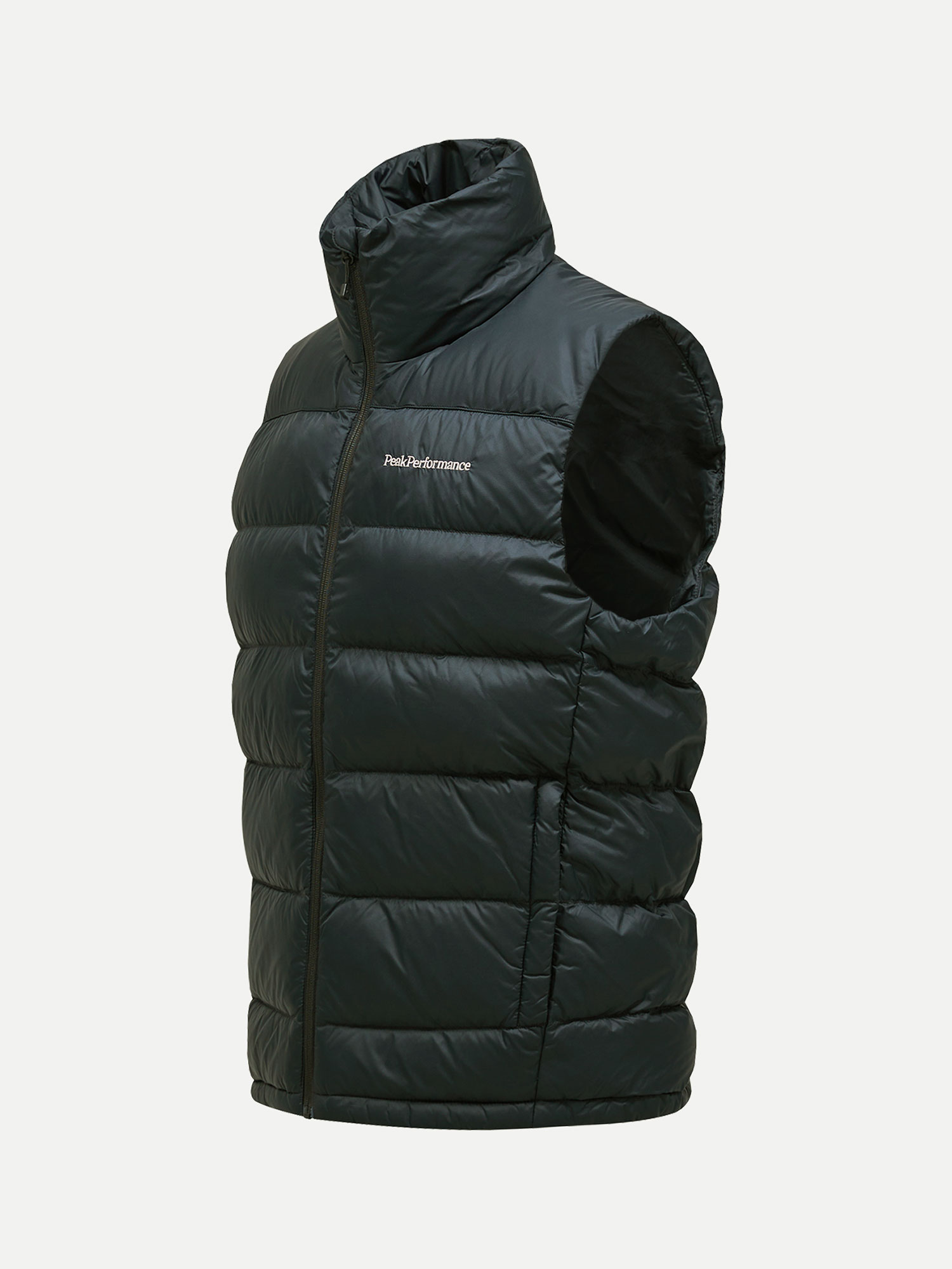Vår Frost-kollektion har varit en succé i ett årtionde. Den här dunvästen i en modern puffer-silhuett kombinerar värme och mjukhet med lätt vikt. Den är tillverkad av återvunnen polyamid och är fylld med förstklassigt 90/10 ankdun/fjädrar för exceptionell värme.