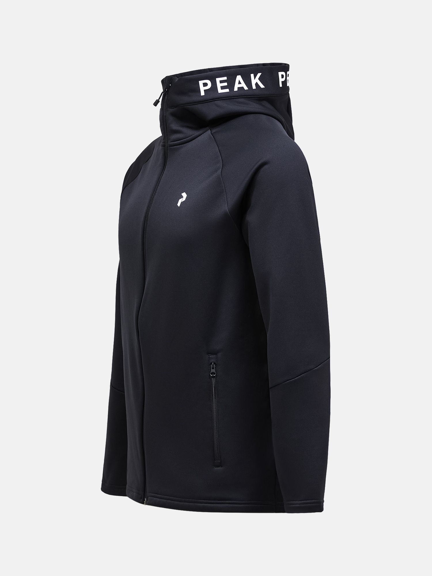 Mjuk mellanlagersjacka med huva som är bekväm, stretchig och perfekt för friluftsaktiviteter. Tillverkad av ett snabbtorkande material som håller dig varm och torr oavsett vad du gör. Designad med en hög huva för maximal stil och funktion.