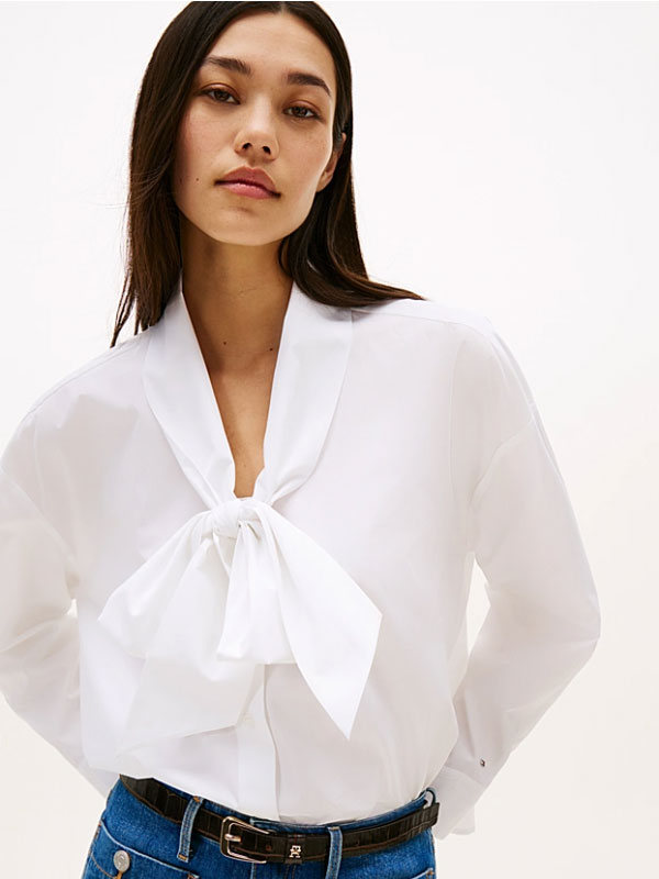 POPLIN BOW COLLAR LS SHIRT