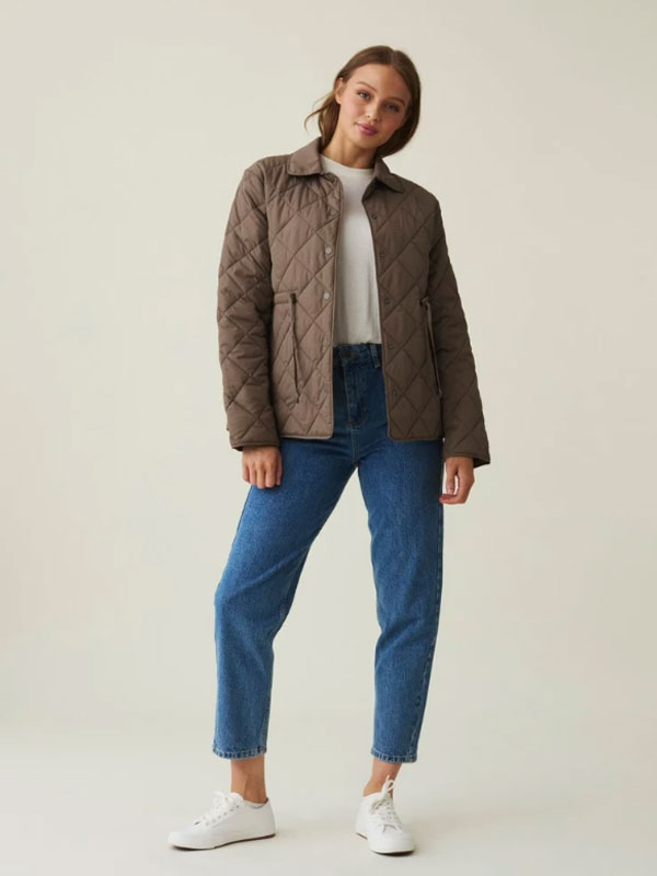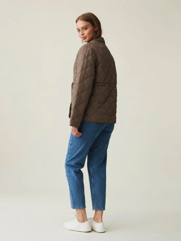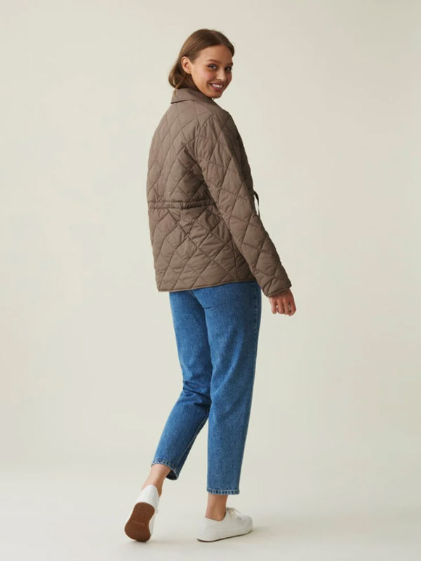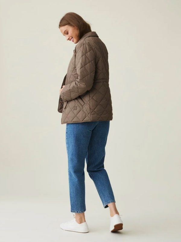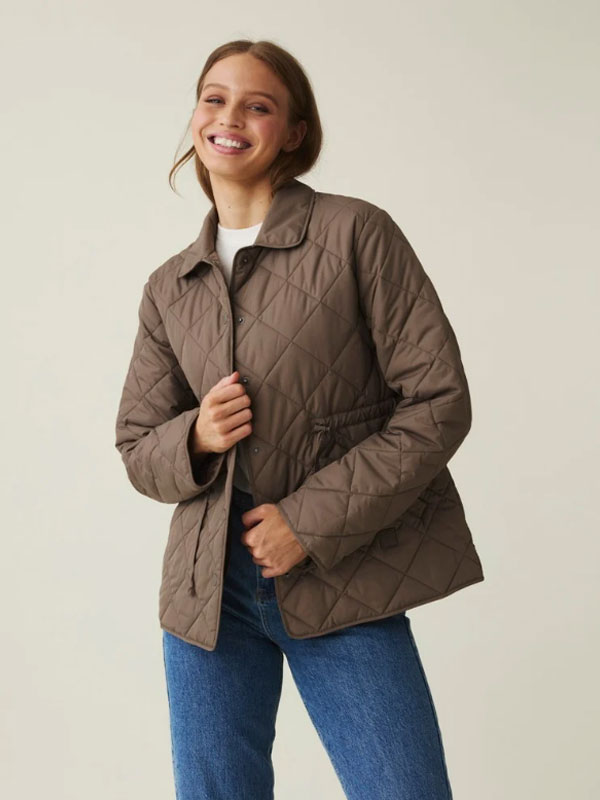 Håll dig varm och mysig denna säsong i vår Sheila quiltad jacka. Den är tillverkad av 100 % polyester med stoppning av återvunnen polyester för miljövänlighet och den uppfyller alla stilkrav med sina quiltade dekorsömmar, klassiska krage och knäppning fram. Vår favoritfunktion? Justerbar dragsko i midjan som ger en perfekt figurnära passform. Oavsett om du ska göra några ärenden eller utforska en lantmarknad på lördagsmorgonen, så har vi dig täckt med denna eleganta klassiker.