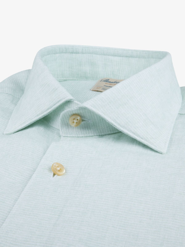 Denna skjorta är tillverkad av linne och lyocell. Skjortan har pärlemorknappar, enkla manschetter och en cut away krage.