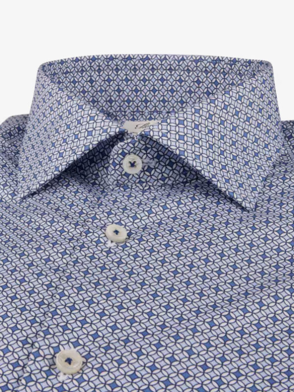 Denna mönstrade twillskjorta är tillverkad av twofold bomull. Skjortan har pärlemorknappar, enkla manschetter och en cut away krage.