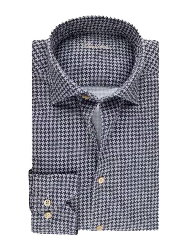 Denna oxfordskjorta är tillverkad av bomull och har ett hundtandsmönster. Skjortan har pärlemorknappar, enkla manschetter och en cut away krage.