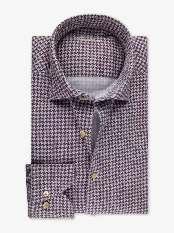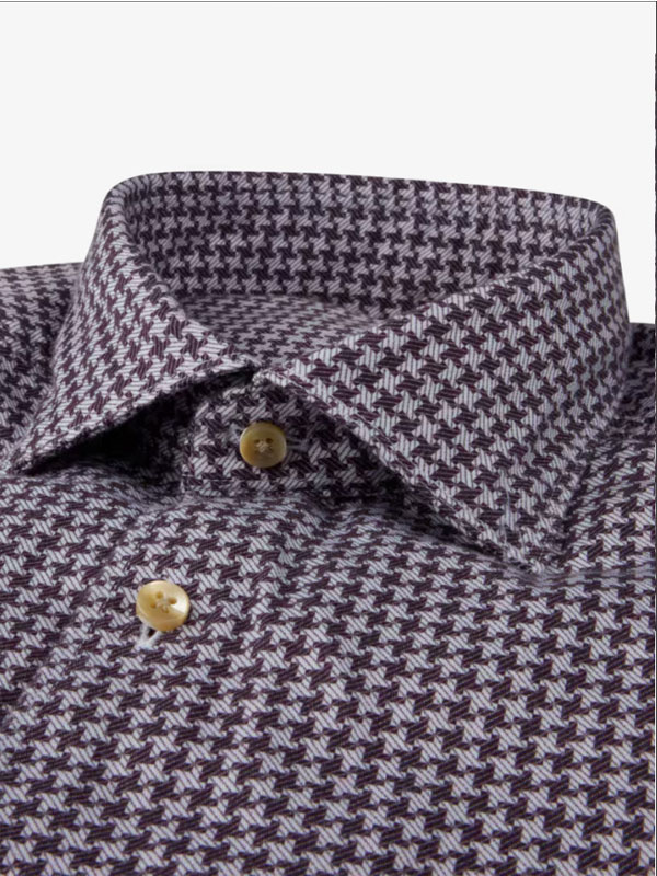 Denna oxfordskjorta är tillverkad av bomull och har ett hundtandsmönster. Skjortan har pärlemorknappar, enkla manschetter och en cut away krage.