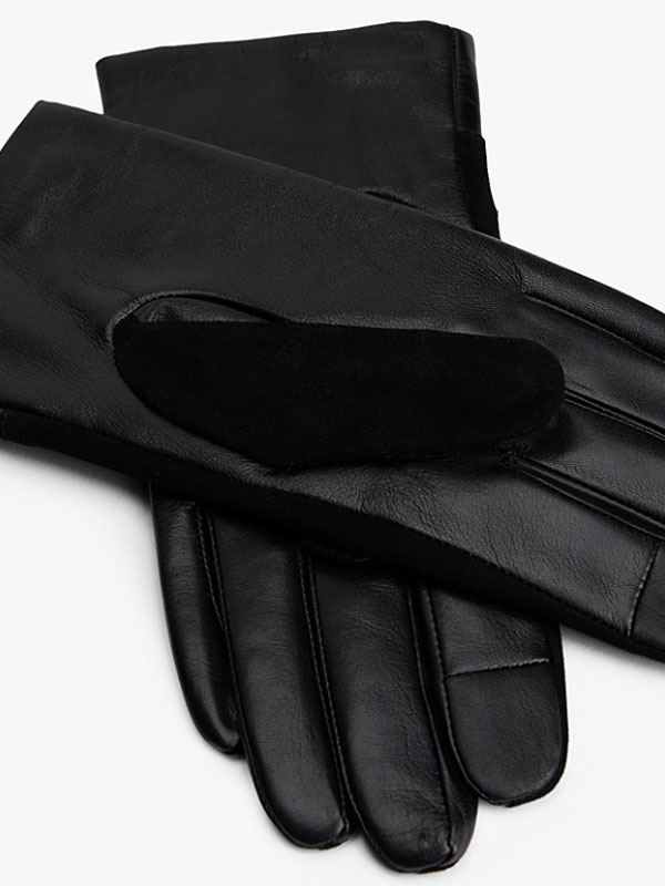 Dessa mjuka läderhandskar kombinerar en slät handflata med en mockabaksida för en lek med texturer, märkta med ett TH-monogram.