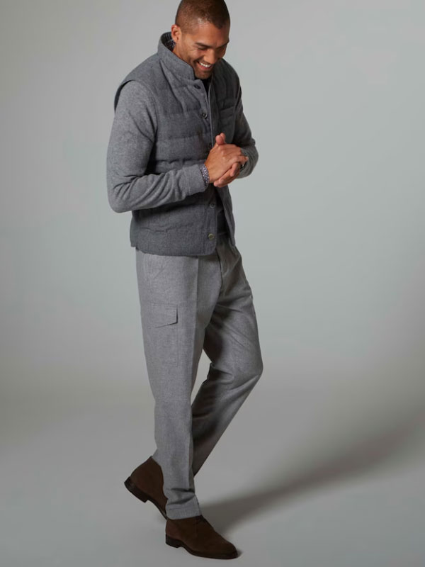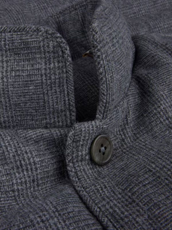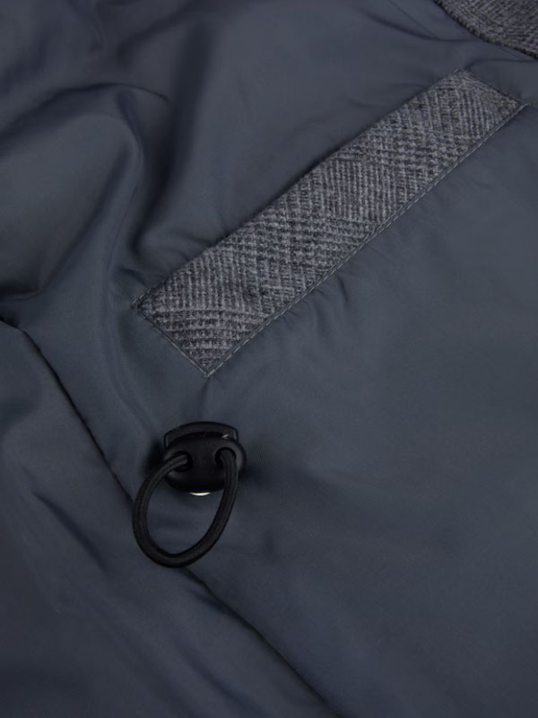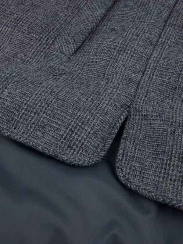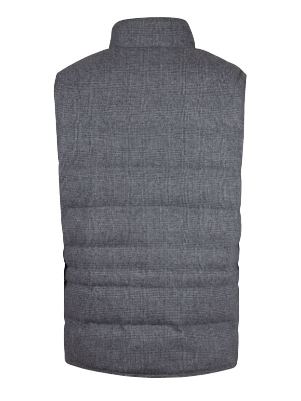 Denna quiltade väst är tillverkad av ull och polyester och har ett rutigt mönster. Västen har pärlemorknappar, en ståkrage, en bröstficka samt fickor i sidan.