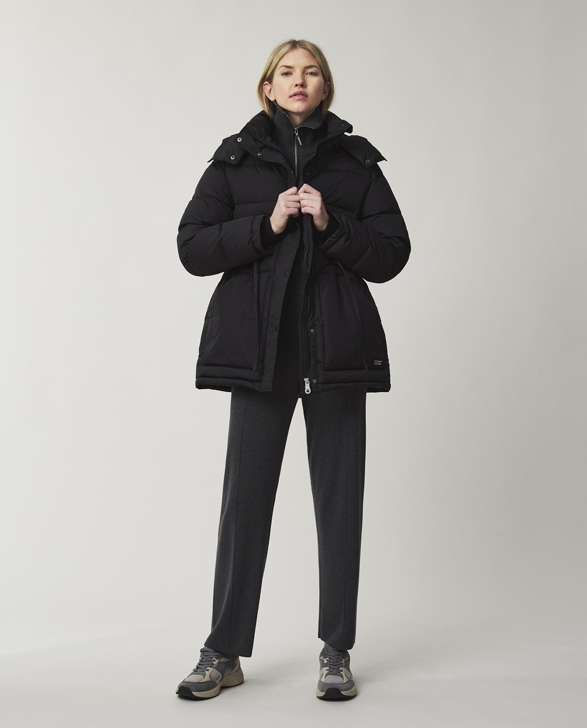 Vår dunparka Viveka helt i återvunna material är den ultimata kombinationen av stil, komfort och ekologisk hållbarhet. Utsidan i återvunnen polyester har behandlats med vattenavvisande BIONIC-FINISH® ECO som håller dig torr i våt väderlek och värmen garanteras av en vaddering med RDS-certifierad, återvunnen dun och fjädrar. Och naturligtvis tummar vi inte på stilen bara för att vi gjort den så fantastiskt bekväm och klimatsmart: jackan har en skönt avslappnad skärning med dragsko i midjan, för justerbar passform. En klassiskt stylad pufferjacka som vi tror att du kommer att älska!