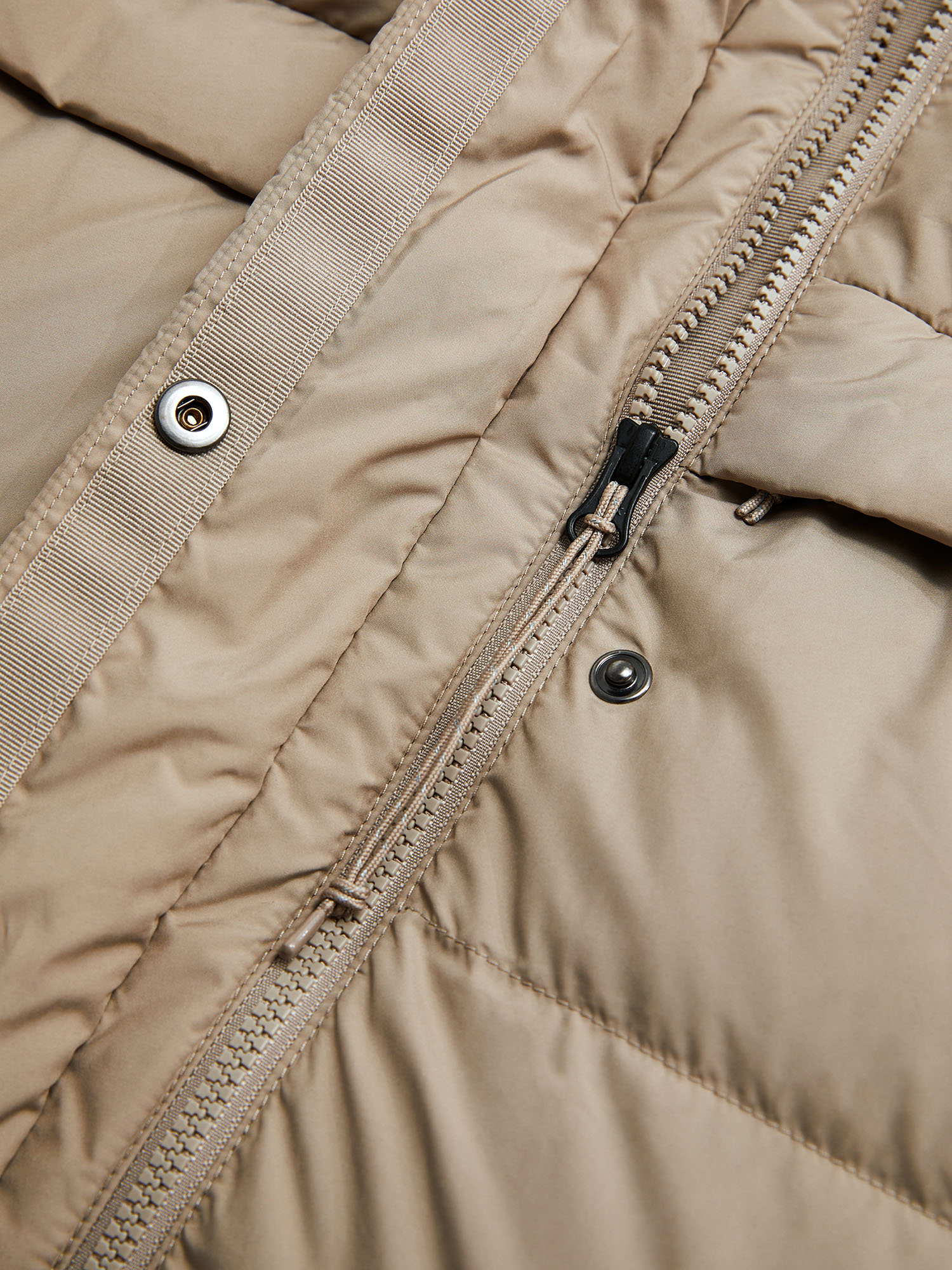Jackan har en hög krage och en justerbar huva som ger extra skydd mot kalla vindar. Tvåvägsdragkedjan framtill gör det enkelt att få bra rörelsefrihet. Flera praktiska fickor som två dolda handfickor med dragkedja, innerficka med dragkedja och bröstfickor med tryckknapp för säker förvaring.